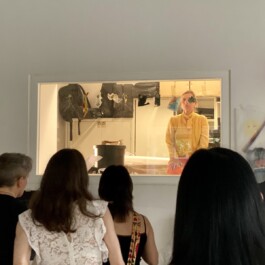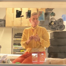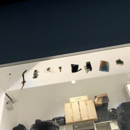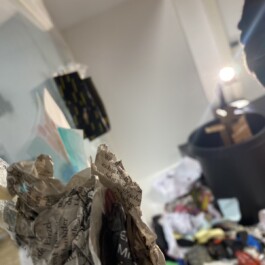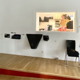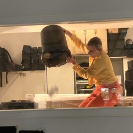 Die Performance entstand im Rahmen des Workshops „Transformation Processes, Udk Berlin". Ausgangspunkt war eine Besichtigung des Flughafens Tegel in Berlin. In neun transformatorischen Arbeitsschritten wurde darauf reagiert. Diese wurden unterhalb eines Schaufensters aufgereiht. In Schwarz, Rot und Gold gekleidet nehme ich die gesammelten Transformationsreste. Ich gehe in den Archivraum, der zum Schaufenster gehört, und klebe sie als Erinnerungsarbeit mit Kaugummi an die Schaufensterscheibe fest: 9 Steps in History.