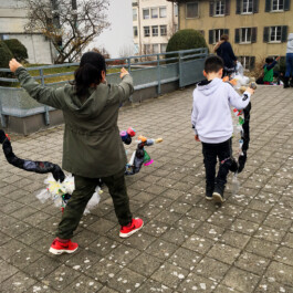 Schüler:innen der vierten Klasse gestalten jeder einen eigenen Wurm aus zuvor gesammeltem Plastikmüll, der als Marionette bespielt werden kann. Mit diesen Würmern gehen sie auf die Suche nach weiterem Plastikmüll.